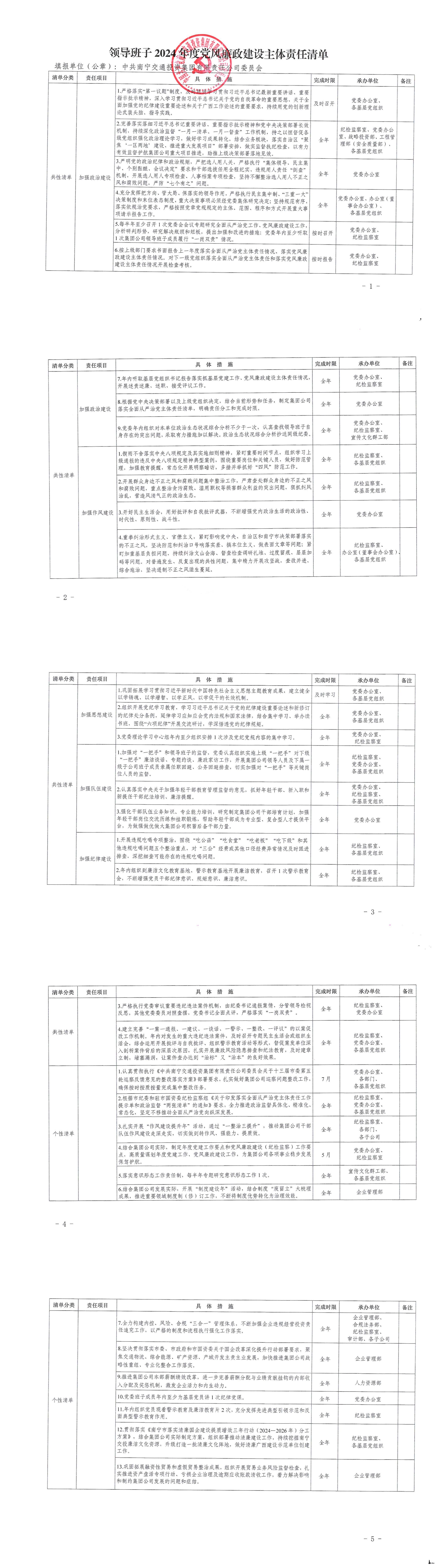 領(lǐng)導(dǎo)班子2024年度黨風(fēng)廉政建設(shè)主體責(zé)任清單