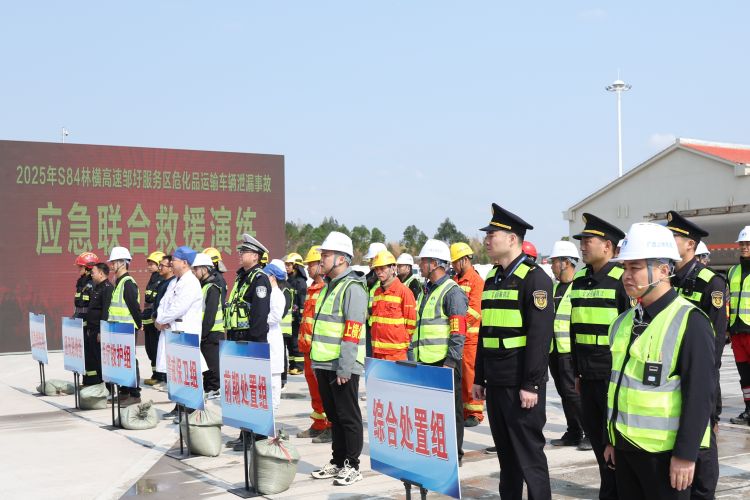 為全面提升林橫高速對(duì)服務(wù)區(qū)?;愤\(yùn)輸泄漏突發(fā)事故的應(yīng)急處置能力,加強(qiáng)“一路多方”各部門(mén)間的協(xié)同配合,保障過(guò)往司乘生命財(cái)產(chǎn)安全,3月18日,南寧交投集團(tuán)下屬南寧高速公司聯(lián)合賓陽(yáng)縣應(yīng)急局、生態(tài)局、交警、消防救援大隊(duì)、衛(wèi)生局及區(qū)執(zhí)法局二支隊(duì)四大隊(duì)、六大隊(duì)等單位,在林橫高速鄒圩服務(wù)區(qū)開(kāi)展?;愤\(yùn)輸泄漏突發(fā)事故應(yīng)急聯(lián)合救援演練。