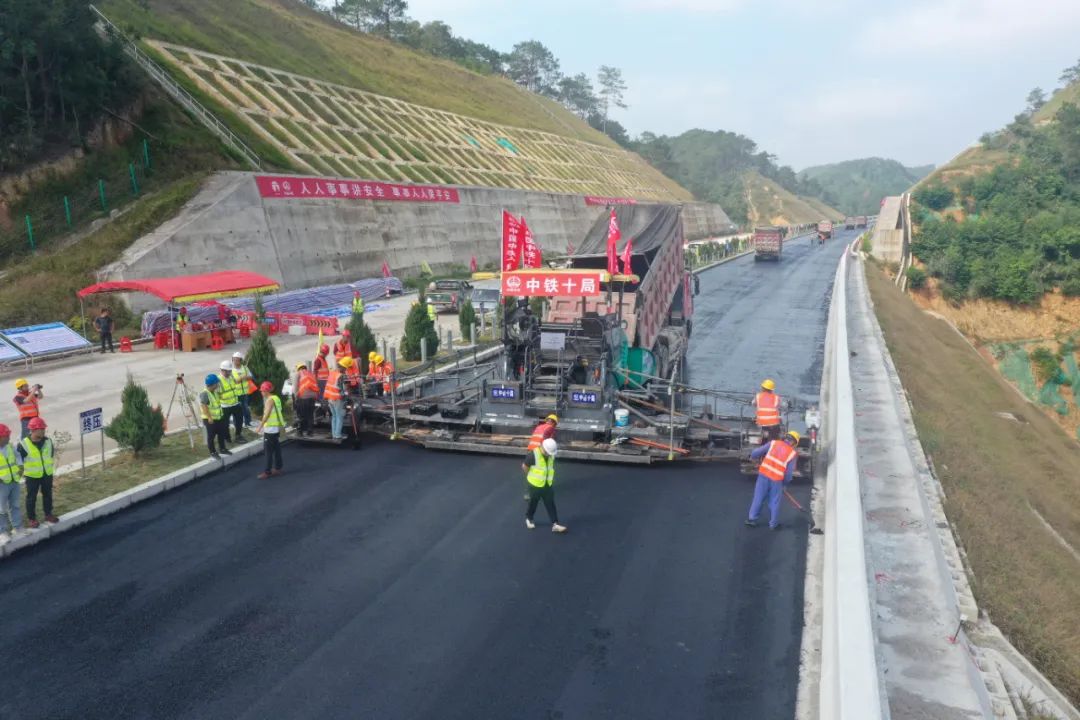 上橫高速項(xiàng)目完成AC-10F瀝青混凝土功能層試驗(yàn)段攤鋪